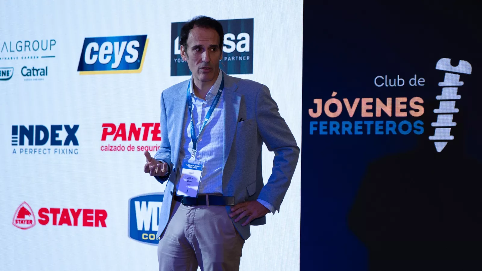 Desde el primer minuto subrayó que la transformación del sector no empezó con la pandemia, sino con el salto exponencial de la tecnología: “Las vacunas las crearon con inteligencia artificial. Esto fue la auténtica disrupción que ha habido. A partir de aquí ha sido exponencial el crecimiento de la inteligencia artificial usada ya a todos los ámbitos”. A partir de esa idea construyó toda una reflexión sobre cómo se comporta hoy el mercado y qué papel deben jugar las pymes ferreteras.