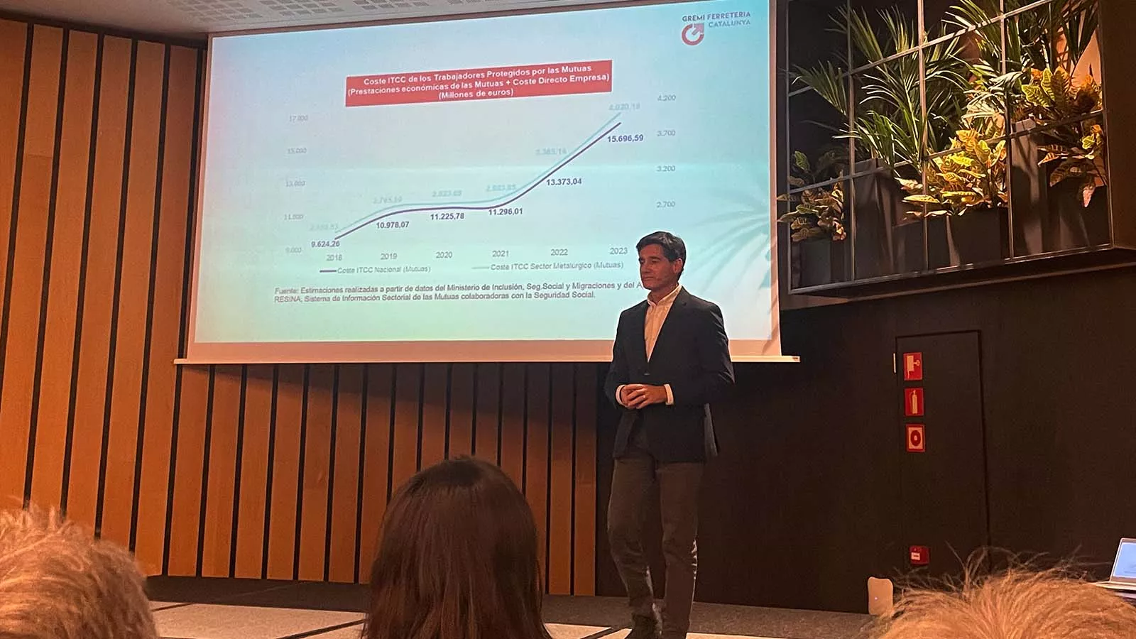 “Los costes por contingencias comunes se han disparado en las empresas desde el 2022”, explicó Andreu apoyado en una gráfica oficial de la Seguridad Social.